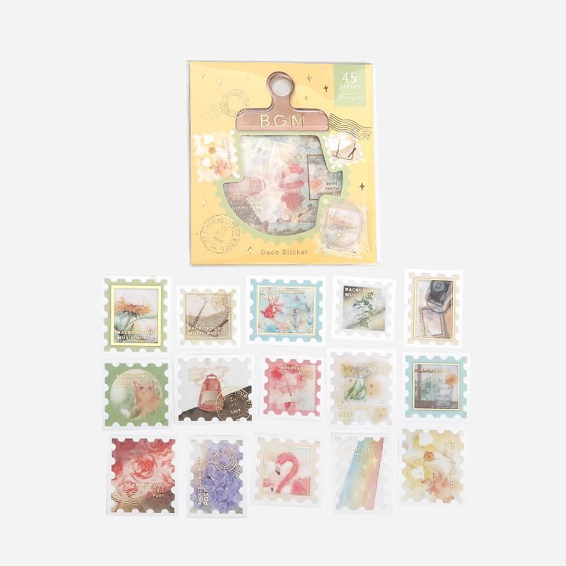 フレークシール箔押し“郵便局“ 物語15designs x 3 45枚入り
