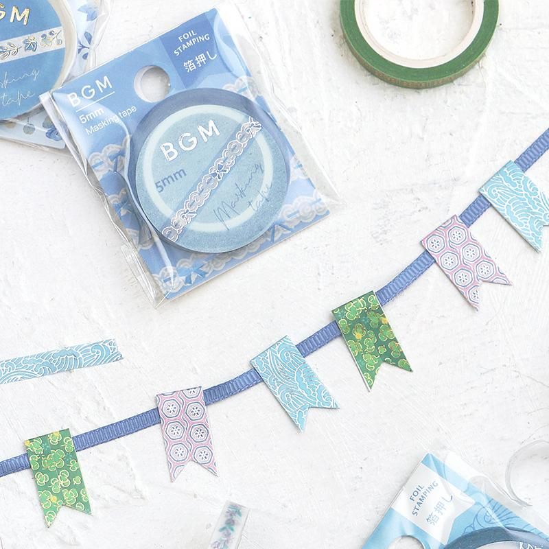 ライフ 箔押し 「ブルー・海波」5mm*5m
